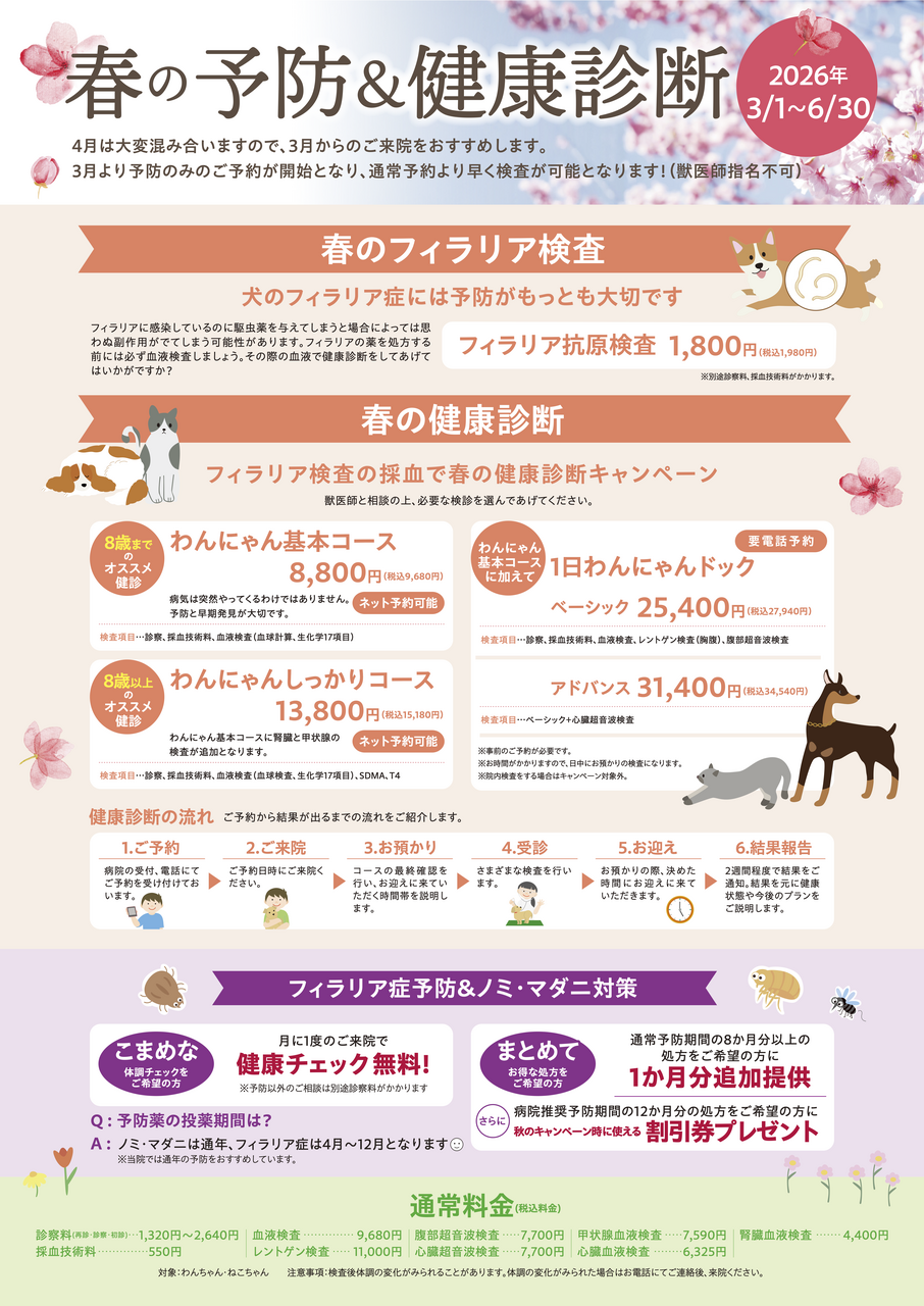 春の予防&健康診断を開始します♪